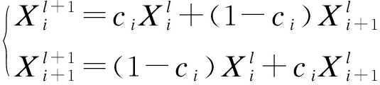 该运算与遗传算法中的交叉运算基本一样,就是以一定的概率P将两个向量进行重新组合,令