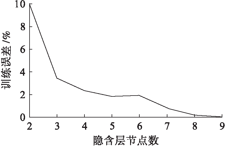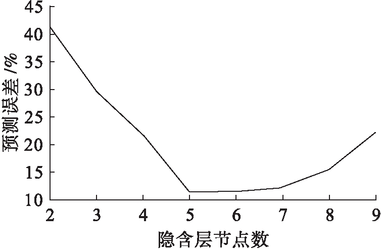 Fig.4 Prediction error of number of nodes in different hidden layers