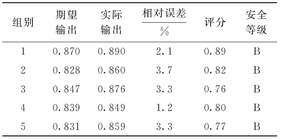 结果表明,该模型的最大相对误差为3.7%,实际输出与期望输出基本一致,所有的网络安全等级为B,网络的安全程度较高.