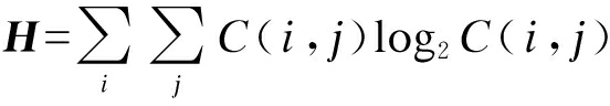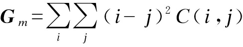 式中:I(x,y)为像素点(x,y)处的灰度值;i和j为灰度值大小.本文使用灰度共生矩阵的4种不同特征参数来表示特征,分别为: