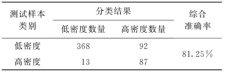 Tab.4 Classification results based on statistical characteristics of gray histograms