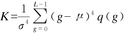 为了更好地刻画图像的灰度直方图统计特征,本文分别计算了图像的均值、方差、峰度和倾斜度,即