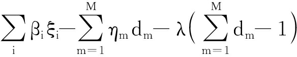 式中:αi和βi为拉格朗日乘子;λ和ηm为权重的约束算子.对wi、b、ξi分别求导并令导数为零,可将其转化为