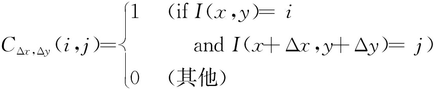 灰度共生矩阵描述了图像灰度对出现的概率,反映的是图像灰度对变化幅度和偏移量等局部灰度信息.假设一副图像有p个不同的灰度值,则图像p×p大小的共生矩阵元素可表示为
