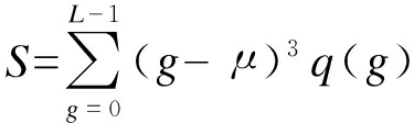 式中:q(g)=Ng/N,g=0,1,…,L-1,为图像的灰度统计分布;Ng为灰度值为g的像素点个数;N为图像总像素点数.