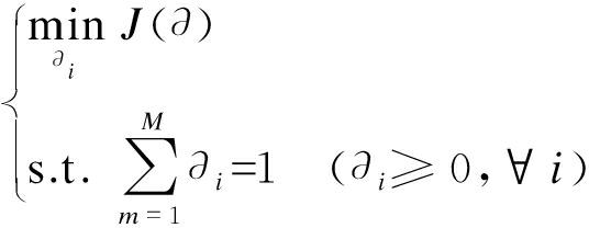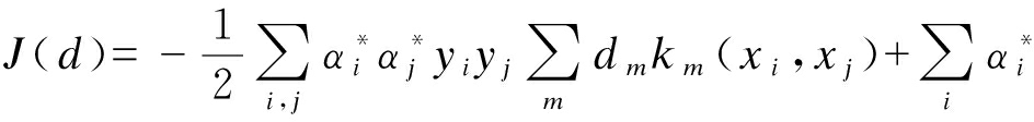 式中:J(∂)为优化目标;∂为权重系数.式(13)对偶形式为