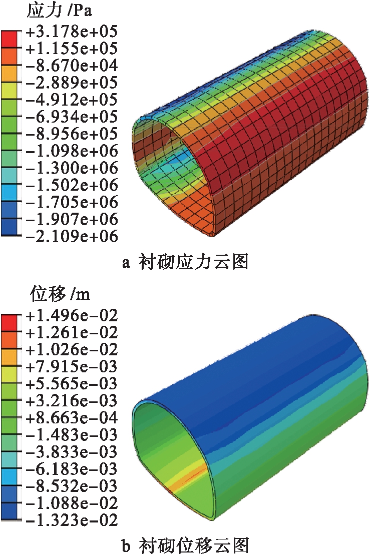 图9 衬砌的应力云图和位移云图