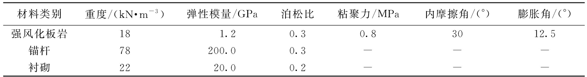 表1 围岩与支护结构材料参数