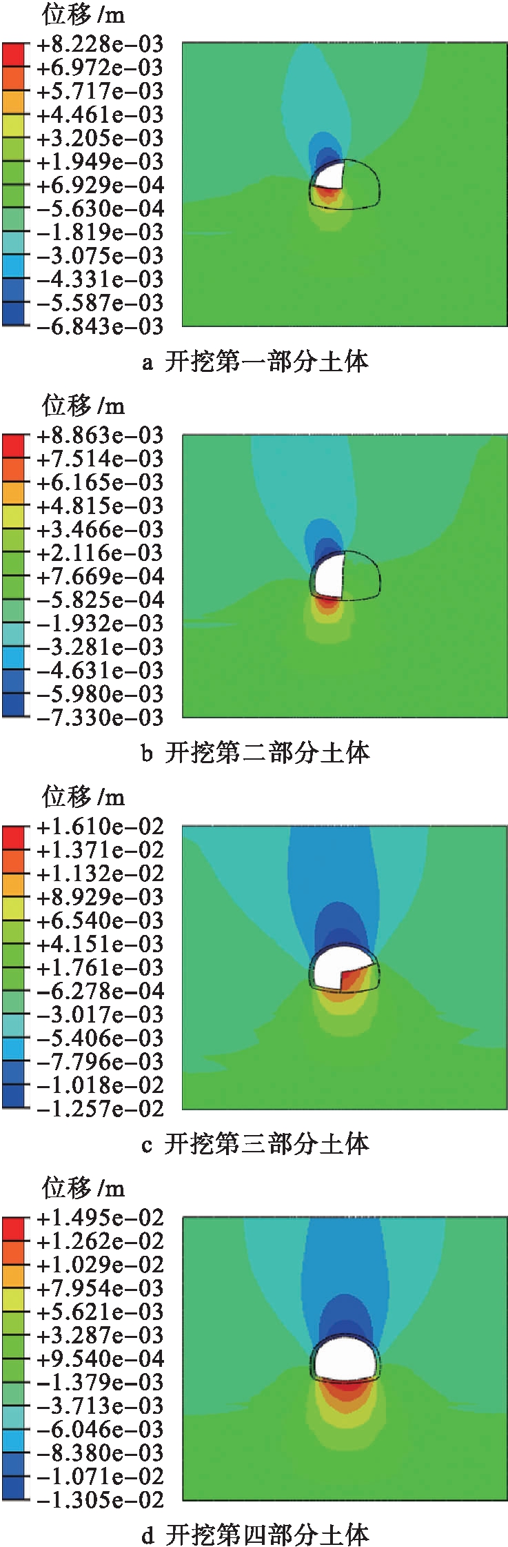 图7 各开挖时步的位移云图