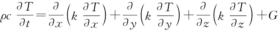 式中:k为导热系数;c为比热;ρ为密度;G为内部热能量;T为温度;t为时间.