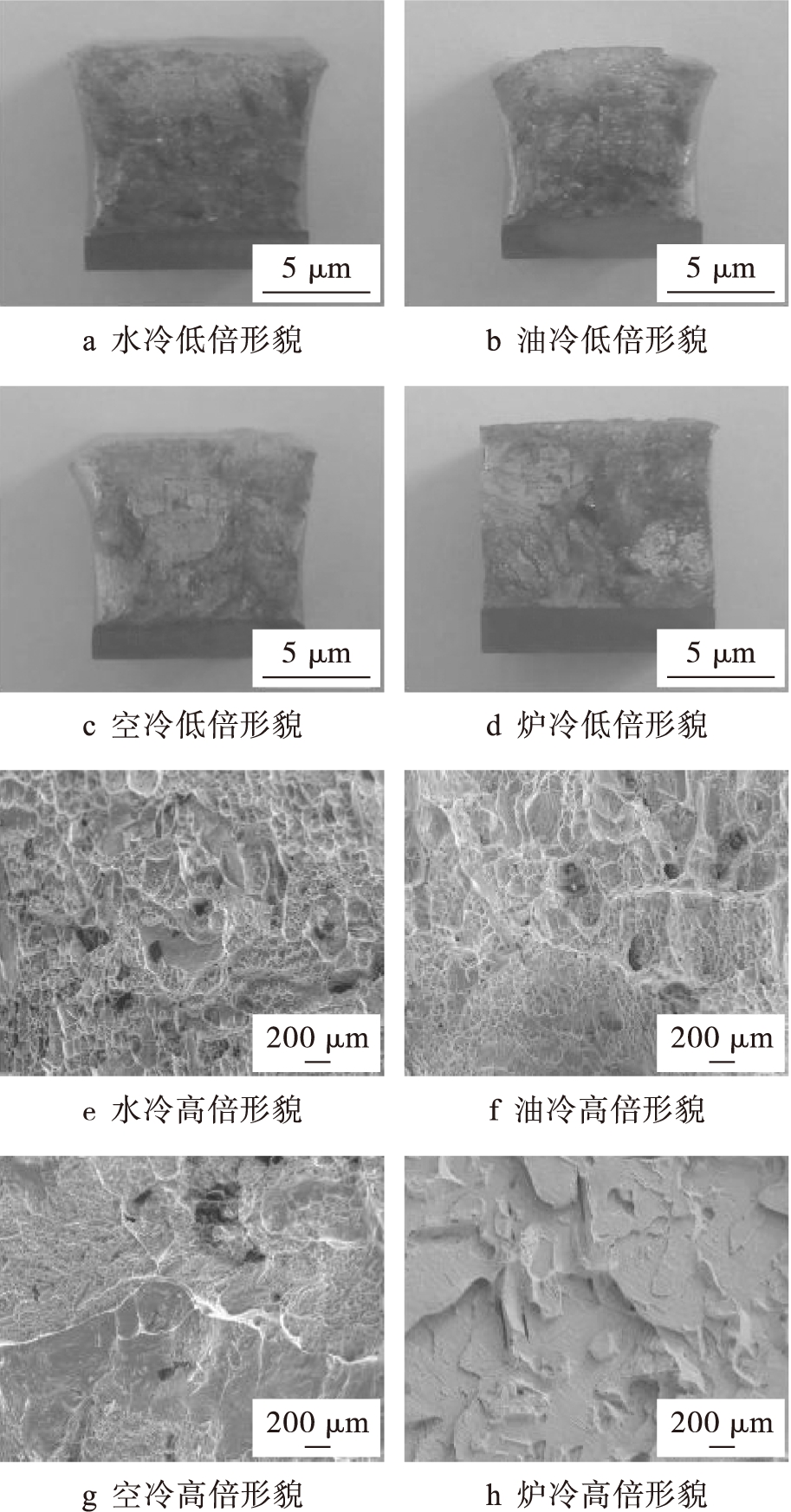 图6不同冷却方式处理后冲击试样的断口形貌