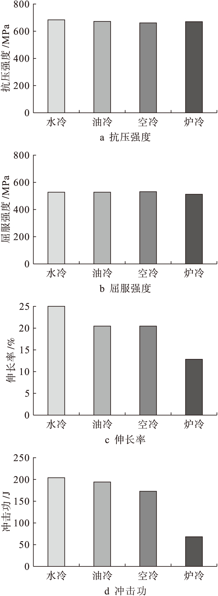 Fig.5Mechanicalpropertiesofduplexstainlesssteelwithdifferentcoolingmodes