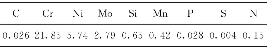 表1试验用00Cr25Ni5Mo3N双相不锈钢的化学成分(w)
