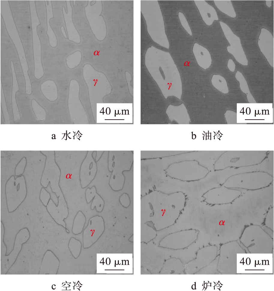 试验用00Cr25Ni5Mo3N双相不锈钢的化学成分如表1所示.用于组织表征和性能测试的试样需要在1 120 ℃固溶处理40 min,之后分别进行水冷、油冷、空冷和炉冷处理.
