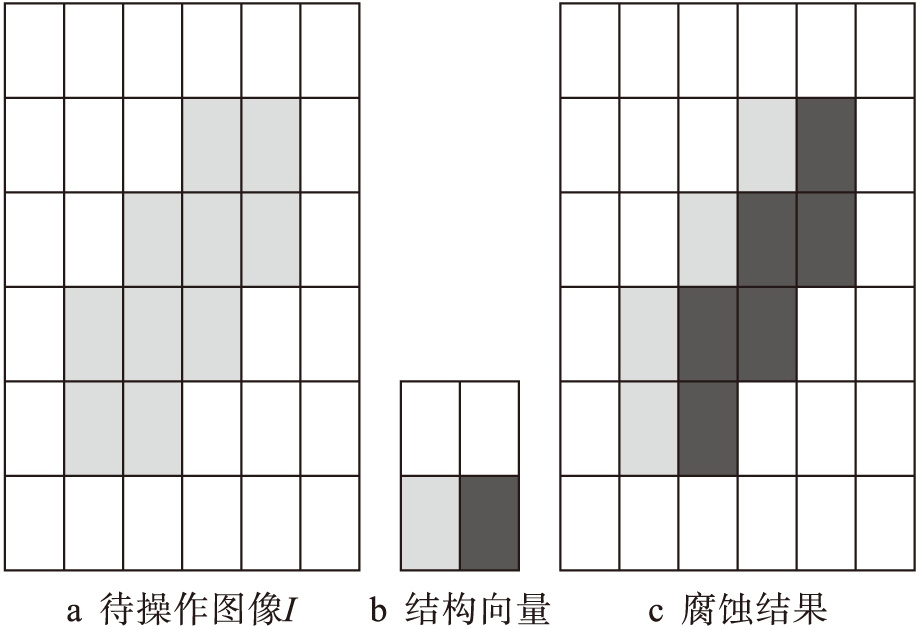 采用平移结构向量检索待进行腐蚀操作图像的过程中,若获取与结构向量一致的子图像,则标识该子图像内结构向量原点的像素位置[12],全部完成标识的像素集即为腐蚀后的图像,如图2所示.