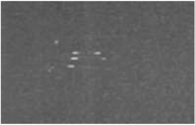 由图7可知,为了处理腐蚀产生的图像像素块边缘缩减现象,需要进行一次膨胀操作,结果如图7c所示.分析图7a、c可知,通过一次腐蚀和一次膨胀操作,处理掉了运动汽车图像中的毛刺,使图像更为连通,而图像通过二次膨胀操作后可使图像的连通性更强,不存在断裂问题.采用骨架采集方法获取的精准运动视频目标轮廓图像如图7e所示,可以看出最终获取的运动视频目标轮廓图像线条更为平滑,图像更为完整.采用传统相邻帧差法时,轮廓特征量少,且检测点不全,导致轮廓不显著,检测结果精度差,适用性差,不适合高精度检测使用,如图8所示.