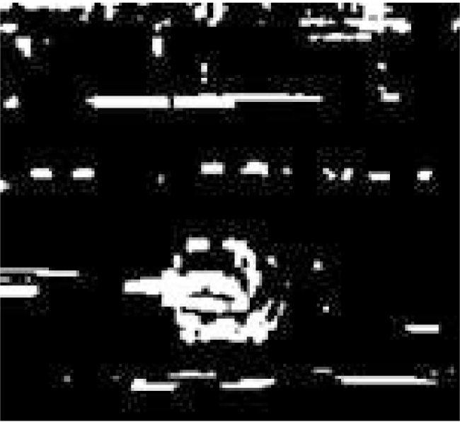 6) 若得到的运动视频目标二值化图像内黑色像素点的逻辑白色是“1",则计算二值化图像和差分二值化图像的交集[7],该过程是在波动范围内基于相关的边缘记录,获取运动视频目标的轮廓范围,采集运动视频目标图像;