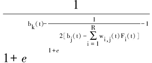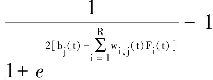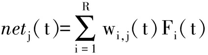 设神经网络的M种输入特征构成的特征向量为F(t)=[F1(t),F2(t),…,FM(t)],特征向量的维度等于输入节点数R;两神经元节点i与节点j间的权重为wi,j,节点k的阈值为bk,则神经网络netj(t)隐含层节点j的输入为