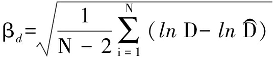 式中:λd为D的对数平均值;βd为D的对数标准差;N为D的样本总量.