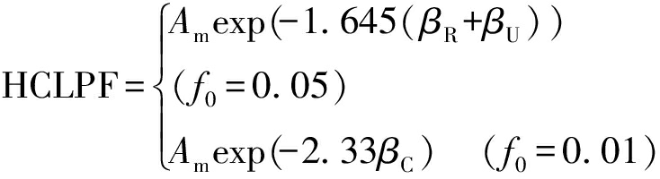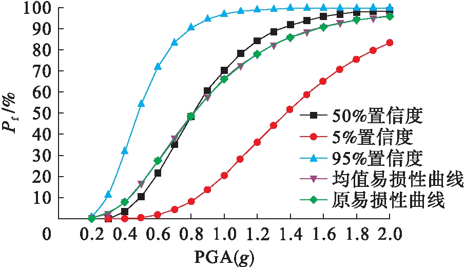 式中,βC为复合的不确定性参数,βC=(βR+βU)1/2,将βC替代式(11)中的βR可得到均值易损性曲线.