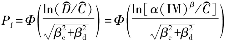 式中:pf为地震作用下结构超越某一性能水准的概率;Φ为标准正态分布函数.