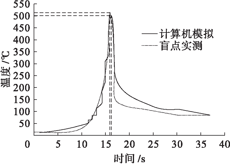 Fig.6 Comparison in thermal cycle curves between blind spot measurement and computer simulation