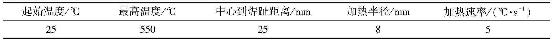 起始温度/℃最高温度/℃中心到焊趾距离/mm加热半径/mm加热速率/(℃·s-1)255502585