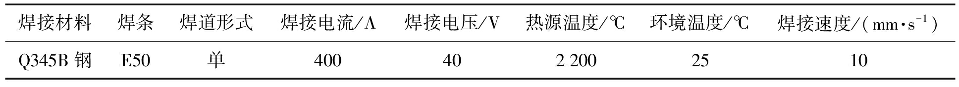 焊接材料焊条焊道形式焊接电流/A焊接电压/V热源温度/℃环境温度/℃焊接速度/(mm·s-1)Q345B钢E50单4004022002510