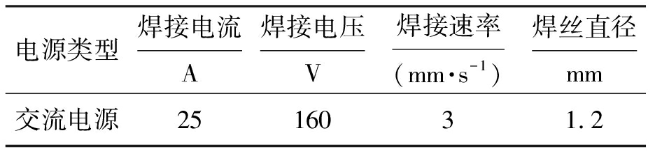 电源类型焊接电流A焊接电压V焊接速率(mm·s-1)焊丝直径mm交流电源2516031.2