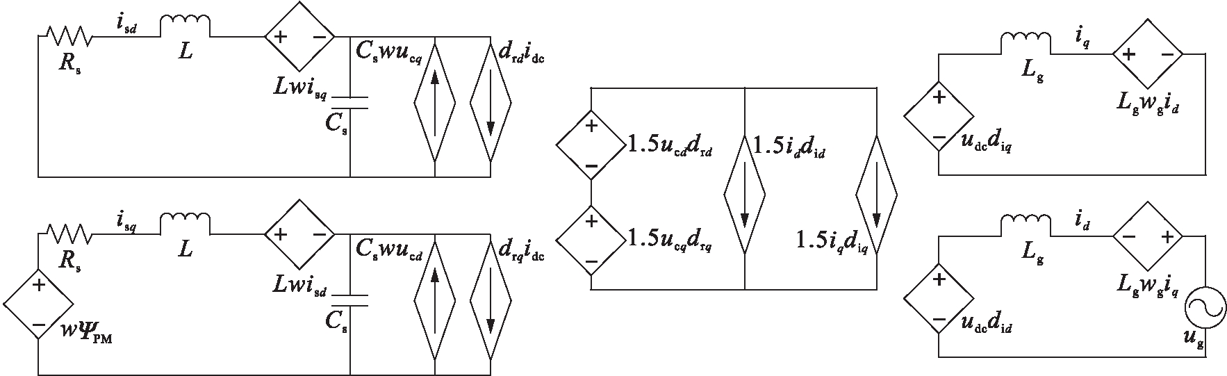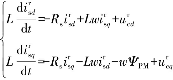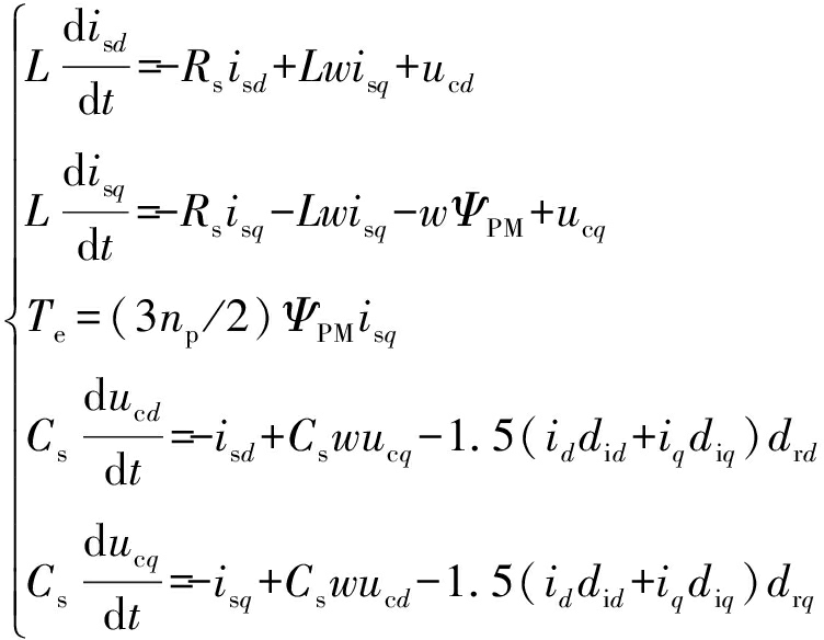 式中:dr、di分别为逆变级调制值与整流级调制值;i、is分别为电网的电流值与定子电流值;Cs为定子电容;uc、udc分别为定子电压及直流平均电压;idc为直流平均电流.