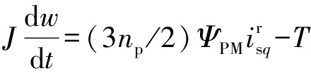 式中:上标r为转子变量;上标s为定子变量.为了最大限度地吸收风能,需要使风机的转速和风速同步变化,使用式(12)得到的转速为w,期望转速为w*,则同步电机PMSG的速度误差为e=w-w*.