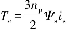 式中:T、Te分别为输出转矩与电磁转矩;Ψs、ΨPM分别为定子磁链与转子磁链幅值;Rs为定子电阻;is、uc分别为定子电流与电压值;L为定子感抗;θ为转子磁链相位;w为风机转速;np为转子极数.