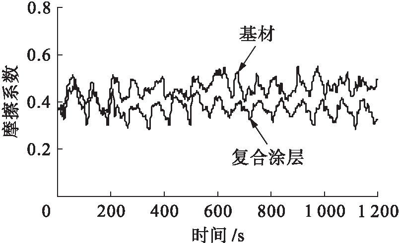 Fig.5 Friction coefficient curves of substrate and composite coating