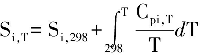 式中:Hi,T为摩尔焓;Si,T为摩尔熵;T为温度.摩尔焓、摩尔熵和摩尔定压热容可以分别表示为