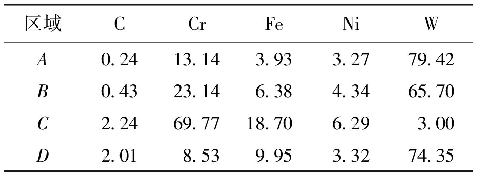 区域CCrFeNiWA0.2413.143.933.2779.42B0.4323.146.384.3465.70C2.2469.7718.706.293.00D2.018.539.953.3274.35