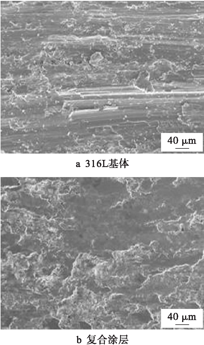 Fig.7 Morphologies of abrasion traces of substrate and composite coating