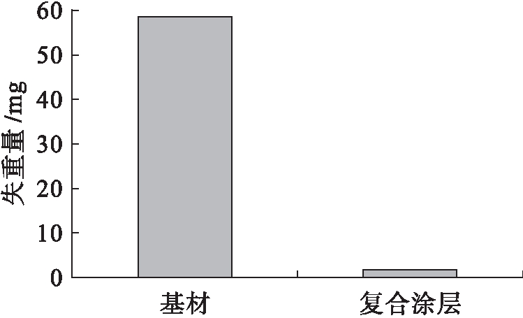 式中,Δm标和Δm样品分别为标准样品(基材)和试验样品的磨损失重量.相关计算结果表明,复合涂层相对耐磨性约为基材的37倍.