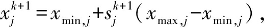 映射为(0,1)区间的混沌变量,其中,xmax,j和xmin,j分别为决策变量的上、下界.