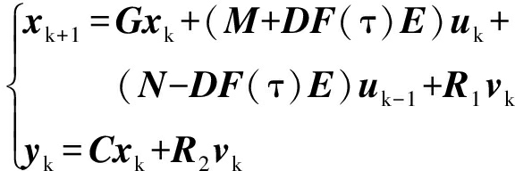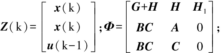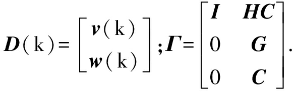 令系统增广矩阵为系统噪声为D(k)=[vT(k),wT(k)]T,可得到系统的模型,即