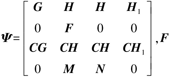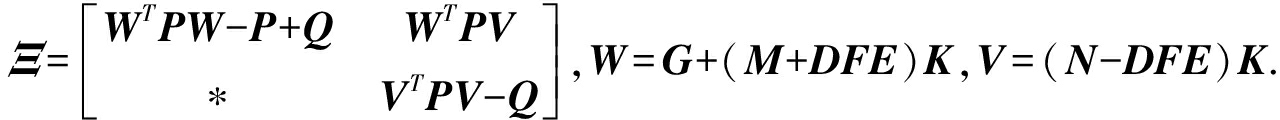式中:F(τ)为时延τ的时变矩阵,满足FT(τ)F(τ)≤I;E为与A的特征值和特征向量相关的常数矩阵.