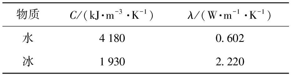 物质C/(kJ·m-3·K-1)λ/(W·m-1·K-1)水41800.602冰19302.220