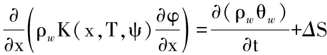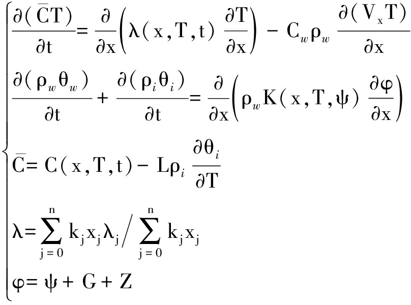 式中:φ为总水头;ψ为基质热或毛细压力;K为有效导水系数;ΔS为单位时间单位体积冰的变化.