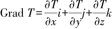 冻土地区不同于一般地区,环境温度会影响土中冰水相变,因此在建立数学模型时,基于土体非稳态温度场引入了相变方程[7].对于空间中每一点对应一个温度标量T(x,y,z),冻土相变温度场的温度梯度为