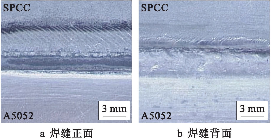 针对SPCC低碳钢与A5052铝合金异种金属进行激光滚轮焊接试验,并对焊接接头的宏观形貌与力学性能进行分析,得到以下结论: