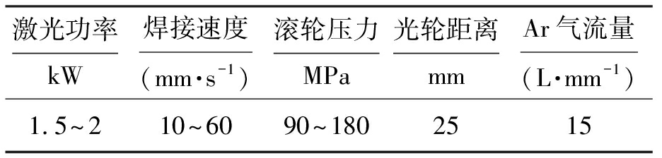 表1 激光滚轮焊接工艺参数