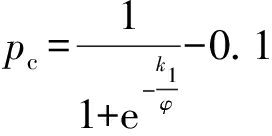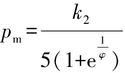 式中:pc为交叉概率;pm为变异概率;k1、k2为固定常数;φ为相似系数,用于衡量种群中个体之间适应度值的相似程度,其定义为