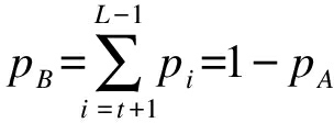假设图像中像素点个数为M,像素点的灰度等级为L,灰度值为i的像素点的个数为ni,则图像中各个灰度值的概率可表示为pi=ni/M.如果以灰度值t为界限将图像的像素点分成两部分,灰度值小于t的像素点为区域A,灰度值大于t的像素点为区域B,则两个区域的概率分别表示为