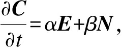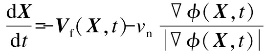 水平集方法的思想起源于曲线演化理论,但和曲线演化理论相比,其克服了曲线演化理论的缺点,适用范围更大.曲线演化问题可以描述为:在二维欧式空间R2中的一条光滑闭合曲线沿着其法线方向以一定速度运动,形成以时间为变量的一簇曲线的过程.假设C=C(p)是一条光滑封闭的曲线,p是任意的参数化变量,设E为切线,N为法线,则存在如下关系:其中,α和β分别为速度函数在切线方向和法线方向的分量.由于曲线在切线方向上的运动仅仅影响曲线的参数化,不会改变曲线的形状和几何属性.根据曲线演化定理机制,对于任何的速度函数(α,β)总是存在对应的