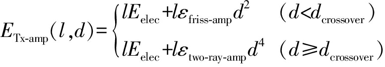 根据文献[13]中的能耗模型,若发送方发送l bit数据至距离d处,则其能耗为