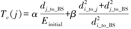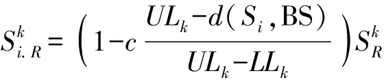 由式(9)可知,总能耗E2-hop将取决于d2(Si,Sj)+d2(Sj,BS),即节点Si与节点Sj之间的距离以及节点Sj与基站之间的距离.那么,如果Sj位于Si与基站之间,则此时能耗是最小的.为了兼顾考虑传感器节点的剩余能量以及通信链路能量开销,中继节点选择策略为:Si从所有候选中继节点能耗最小的两个节点中进行选择,剩余能量更高的节点作为正式中继节点,因此,本文定义中继簇头节点的转发参数为